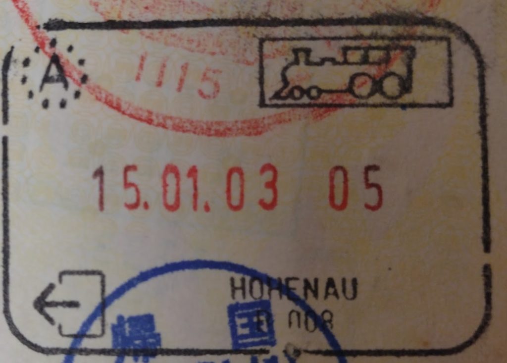 入出国審査官が列車に乗り込んでくる。乗客は列車を降りる必要はない。